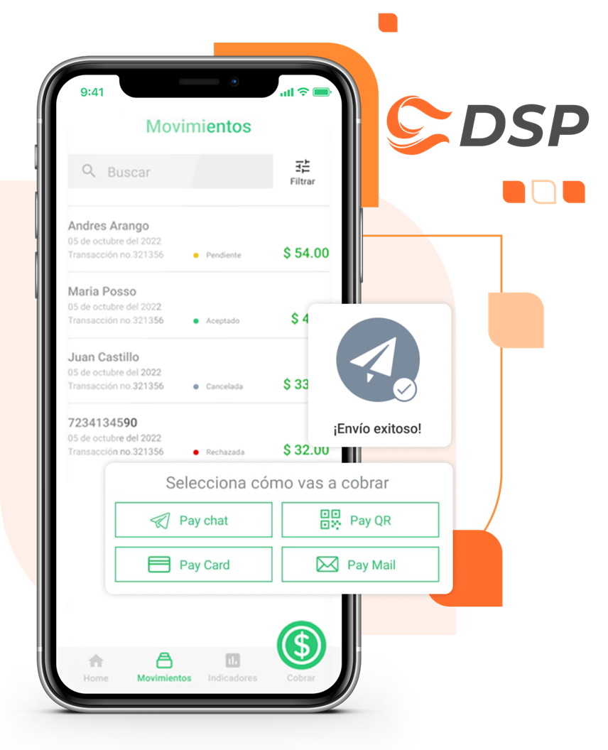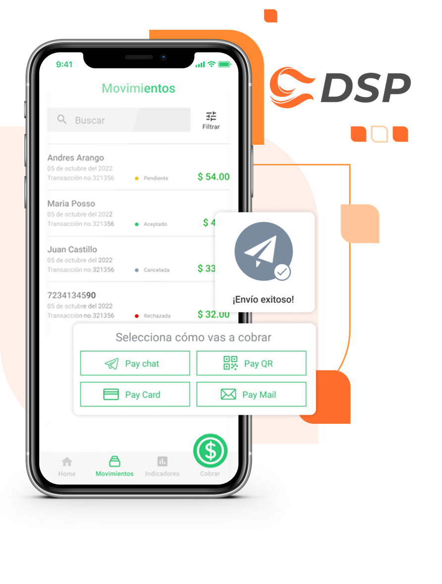 DSP ofrece una amplia variedad de métodos y canales de pago para que tus clientes puedan elegir cómo y dónde pagar, brindando opciones seguras y cómodas adaptadas a cada necesidad.